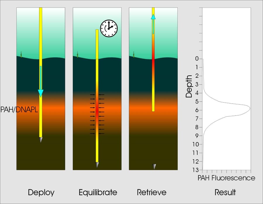 The Dart system is particularly well suited for characterization work in shorelines, marshes, or shallow bodies of water adjacent to former MGP or creosote sites, where profiling PAHs sediments has been difficult and expensive.